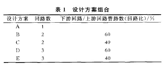 對于某一機(jī)組的冷凝器,設(shè)計了5種回路比 例,如表1所示。